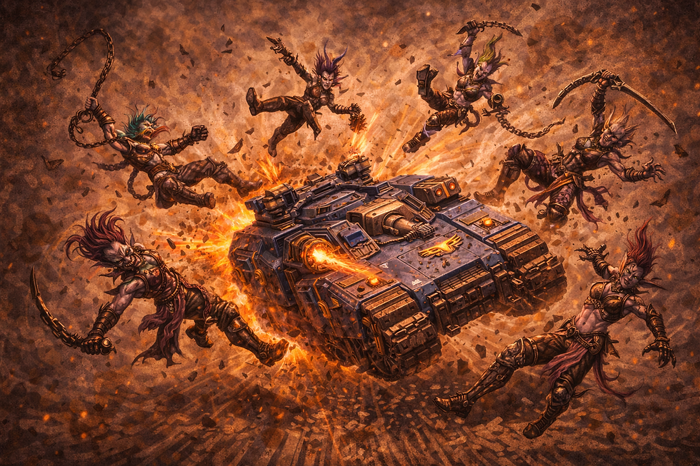 I'm sticking to my guns here (mostly just to see if we can get Jack onto his 7th Army for the year) by backing the Fredman. Lots of guns, lots of hulls, plenty of speed - not the sort of thing Spectacle excels in as the Wyches become a lot more susceptible to getting merked.